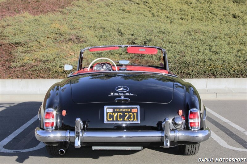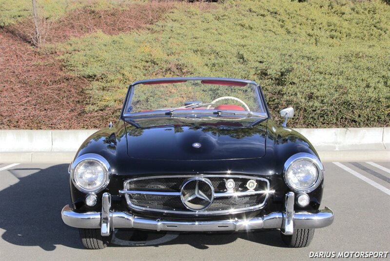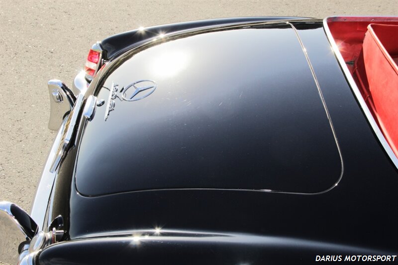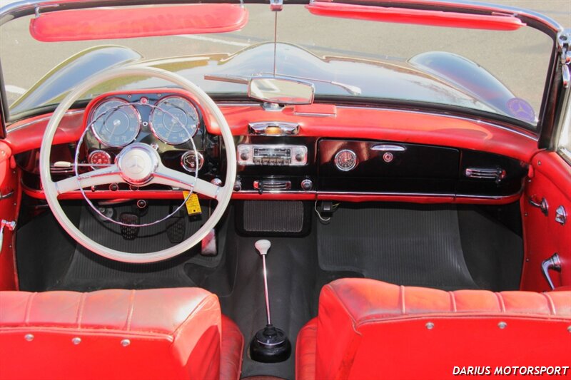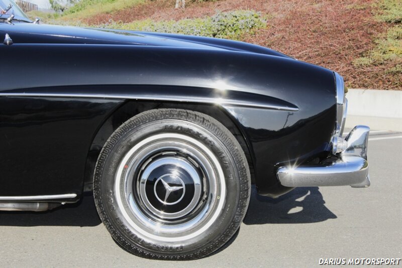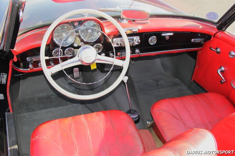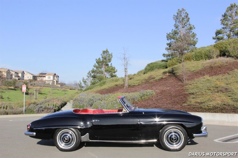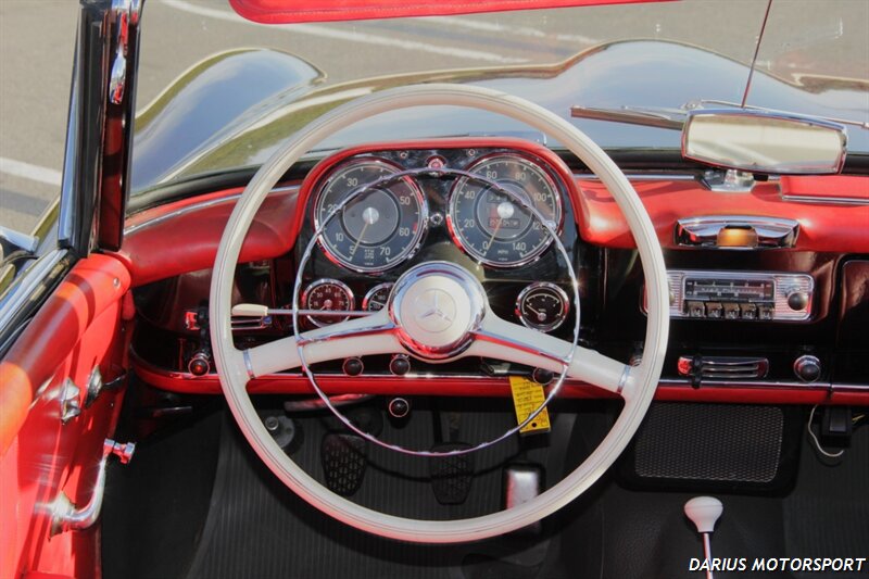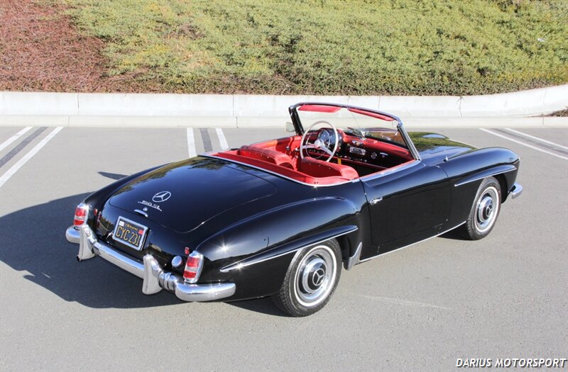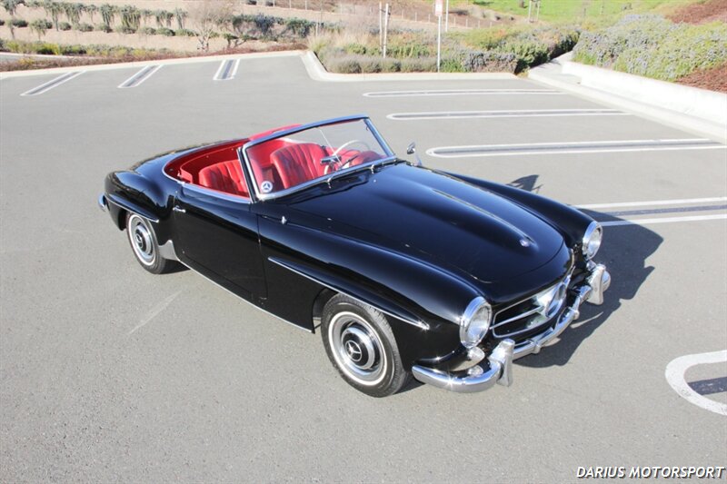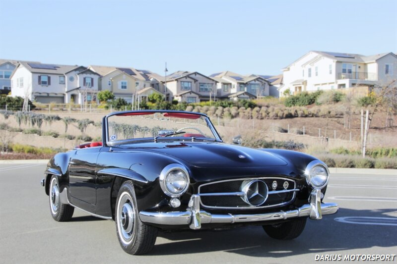 The 1961 Mercedes-Benz 190SL (W121) is a luxury roadster that offered a more accessible, touring-focused alternative to the legendary 300SL Gullwing. This 1961 Mercedes-Benz 190SL is finished in black over red leather and powered by a 1.9-liter M121 inline-four paired with a four-speed manual transmission. Equipment includes a convertible top, 13″ steel wheels with body-color hubcaps, and power-assisted drum brakes. The 1961 Mercedes-Benz 190SL (W121) is a significant year for the model, featuring key refinements near the end of its eight-year production run. It was specifically designed to meet the American market's demand for a glamorous, yet practical, grand tourer.
