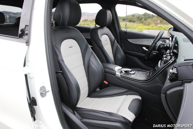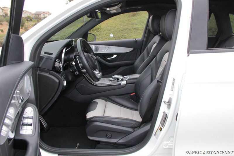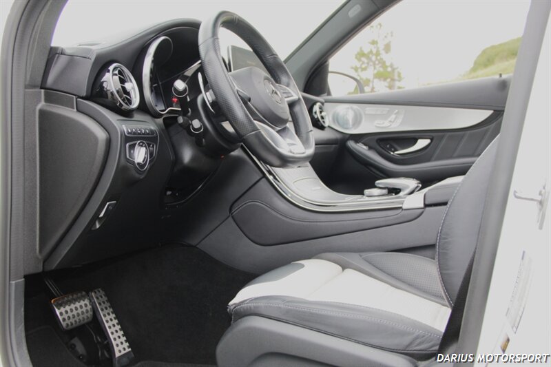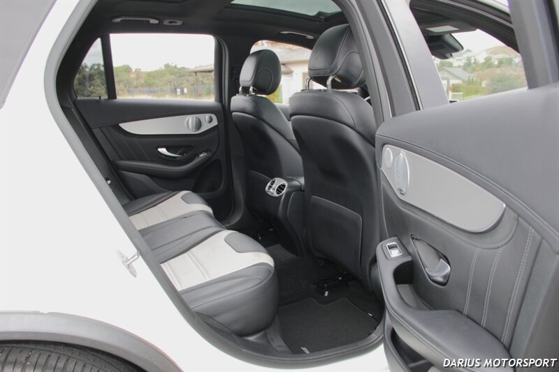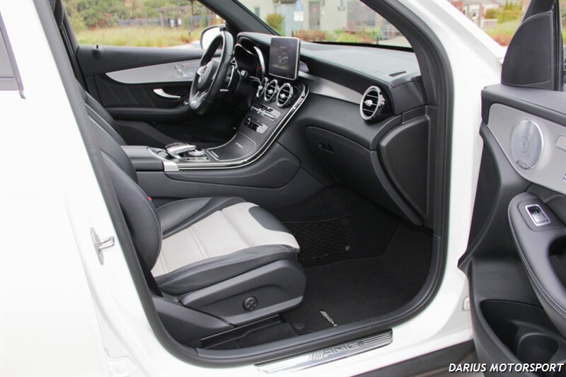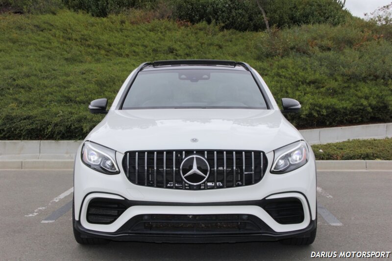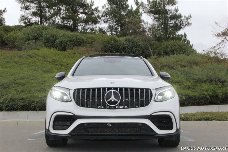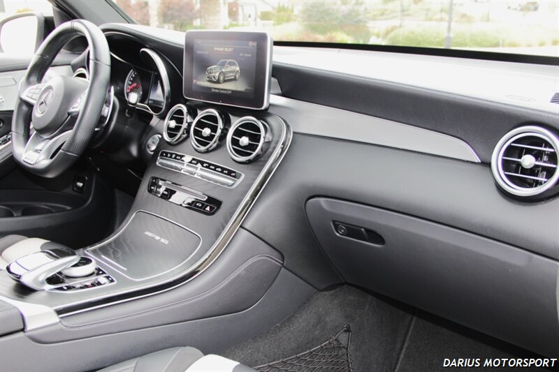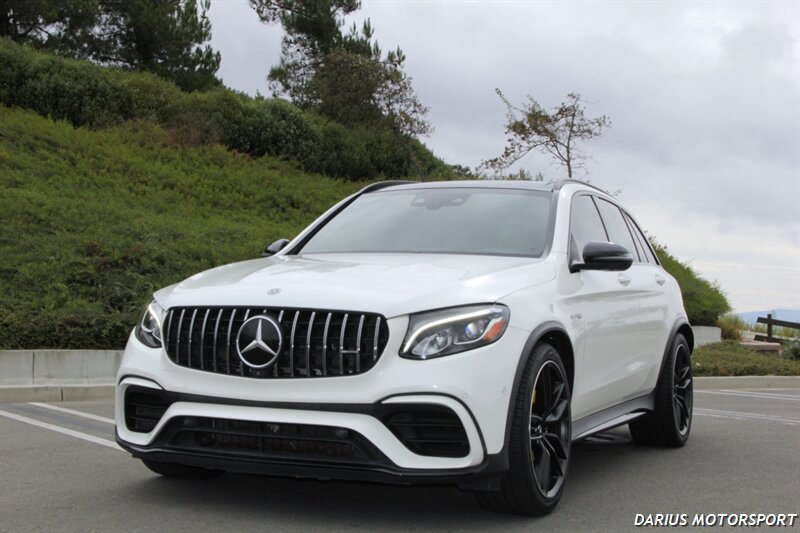 This 2018 Mercedes-Benz GLC 63 AMG is a high-performance, all-wheel-drive midsize SUV powered by a hand-built 4.0-liter twin-turbo V8 engine, producing significant horsepower and torque for quick acceleration. It features an AMG-specific air suspension, a performance-tuned chassis, and aggressive styling like the Panamericana grille, all designed to deliver sports car-like handling in a practical SUV body. Inside, you'll find premium materials, AMG performance seats, and a sporty, driver-focused cockpit with a traditional controller-based infotainment system.