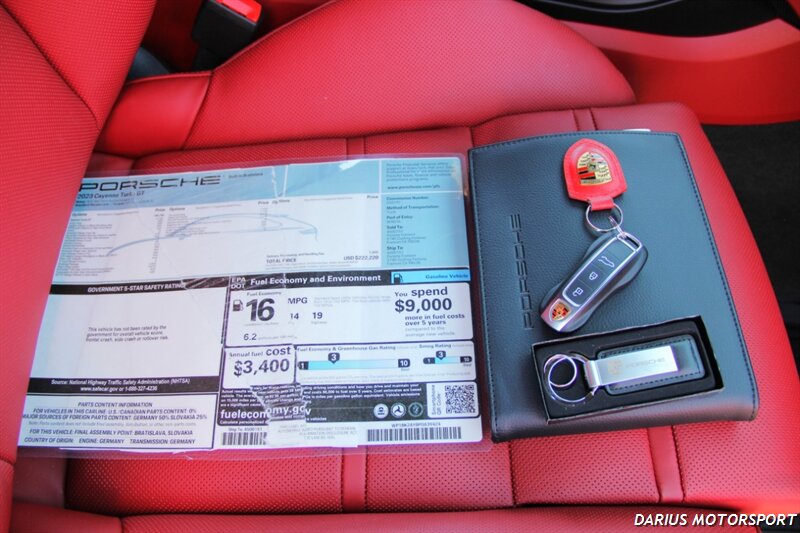 This 2023 Porsche Cayenne Turbo GT is a high-performance SUV known for its powerful engine, sporty handling, and distinctive design. It boasts a 4.0-liter twin-turbo V8 engine producing 650 horsepower, enabling it to accelerate from 0 to 60 mph in 3.3 seconds and reach a top speed of 186 mph. The Turbo GT also features a specially tuned chassis, adaptive air suspension, and advanced technologies like Porsche Dynamic Chassis Control (PDCC) and rear-axle steering, enhancing its driving dynamics.